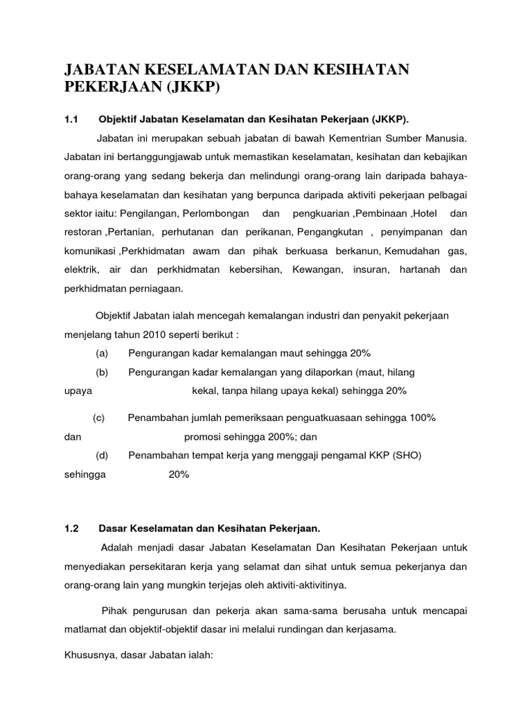 Dasar Keselamatan Dan Kesihatan Pekerjaan Kkm 2013 Pdf